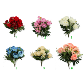 Bukiety sztucznych róż, które posiadamy są pięknie zdobione, Oprócz samych róż, mamy różne kompozycje z róż sztucznych na cmentarz, oraz liczne dodatki, które również doskonale dekorują całość. Bukiet ze sztucznych róż, to wspaniały pomysł na prezent dla ukochanej osoby. Z racji faktu, że kwiaty sztuczne są trwałe jak miłość, warto podarować je bliskiej osobie. Dodatkowo wszystkie bukiety posiadają różne wielkości, róże ilości kwiatów w bukiecie, czy dodatki, które wypełniają całą kompozycję, dając jej niesamowitego wyglądu i stylu. Bukiet ze sztucznych róż dostępny u nas będzie idealnym rozwiązaniem dla ludzi szukających wyjątkowych rzeczy takich jak wiązanka ze sztucznych róż. Sztuczne róże do wazonu na cmentarz także znajdziecie u nas. Posiadamy bardzo szeroki asortyment roślin sztucznych, które doskonale nadają się na cmentarz. Piękne gałązki róż, czy dodatki do tych gałązek, lub może stelaże i łodygi? Które w połączeniu z główkami kwiatów, będą stanowiły bukiet wg Waszego projektu i uznania! Bukiety ze sztucznych róż na cmentarz, to gotowa propozycja, dla ludzi szukających czegoś ekstra w świetnej cenie! Sztuczne róże bukiety, z perspektywy lat osiągnęły naprawdę niesamowity design, kiedyś sztuczne kwiaty wyglądają tanio i brzydko, dzisiaj natomiast rośliny sztuczne często wyglądają jak żywe kwiaty. To znowu jest wspaniała okazja, żeby nie przepłacać, ponieważ jak wiemy, żywe kwiaty mają swój termin. W przypadku bukiety róż jak żywe, mamy do czynienia z produktem na dekady ;) Oprócz bukiety róż hurt, posiadamy także wiele dodatków doskonałych do kwiatów tj. dodatki, wstążki, cekiny, florety, druty, stelaże, łodygi czy główki wyrobowe, lub susze. Oprócz gotowych rzeczy z nami możesz stworzyć niesamowite kombinacje. W swojej ofercie mamy również znicze, świecie, czy artykuły dekoracyjne, wszystko w bardzo wielu wzorach i sprzedaży hurtowej, jak i również detalicznej online. Serdecznie zapraszamy do zakupów w naszej hurtowni, lub na nowo powstałej stronie www! :)