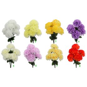 Hurtownia kwiatów sztucznych, oraz importer dekoracji kwiatowych prezentuje przepiękne bukiety chryzantemy dostępne w wielu ciekawych wzorach i kolorach. Różne wielkości, materiał z którego powstały, oraz wysoka jakość i niska cena składają się na produkt niemal idealny. Doskonałe do upiększania nagrobków, czy różnego rodzaju kompozycji kwiatowych. Dzięki wykonaniu z tworzyw sztucznych, nasze chryzantemy są długo wieczne!