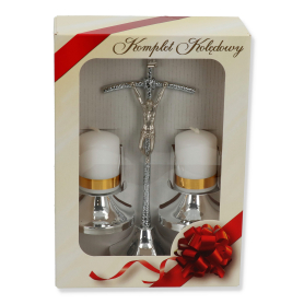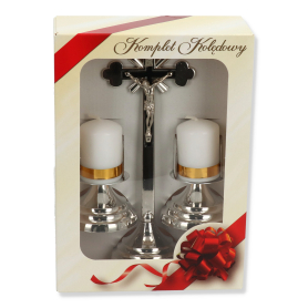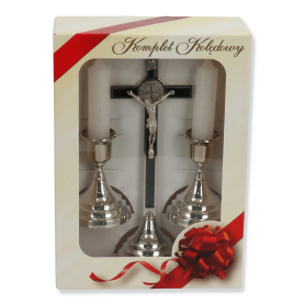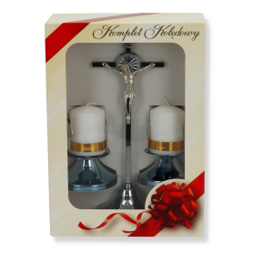 Wymiary: Krzyż: h-20,5cm / świecznik ze świecą: 16cm
