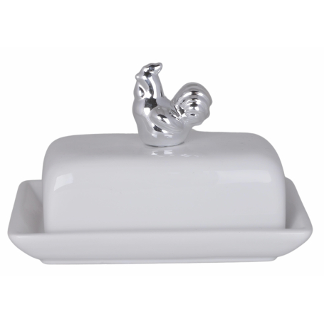 Maselniczka ceramiczna biała za srebrnym kogutem 5891